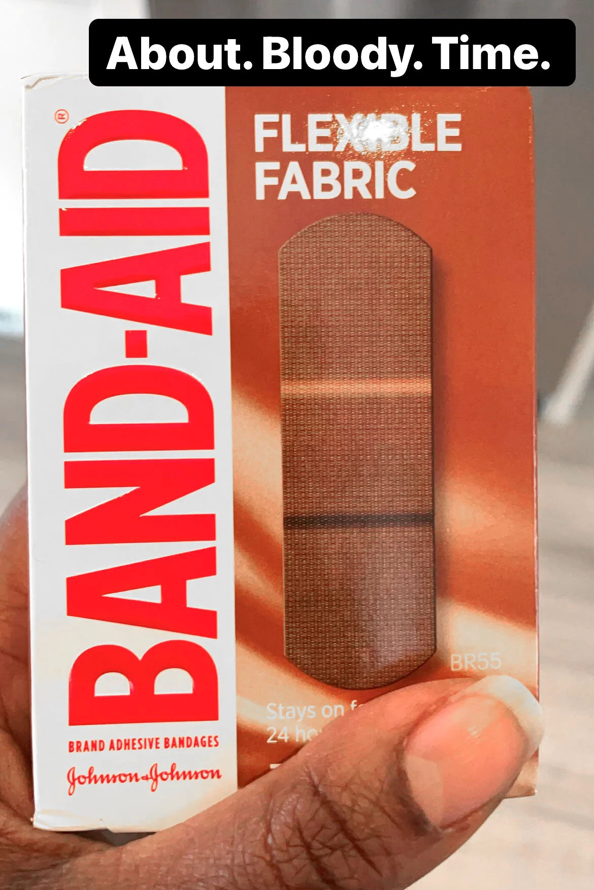 I returned home and uploaded an image of my hand next to the Band Aid pack with a caption “About. Bloody. Time.” The response was overwhelming and surprising: